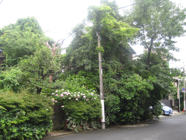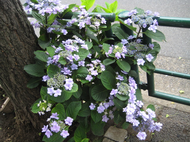 バス通り沿いの街路樹の、根元に咲いた紫陽花。