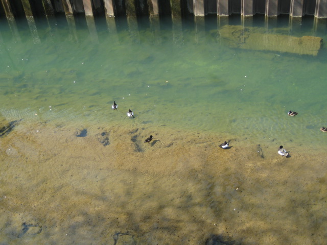 古い海底の上には、ぷかぷかとカモたちが浮かび。
