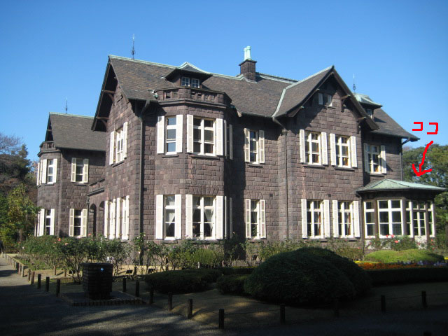 洋館1階の、全面ガラス窓のこの部屋の・・・