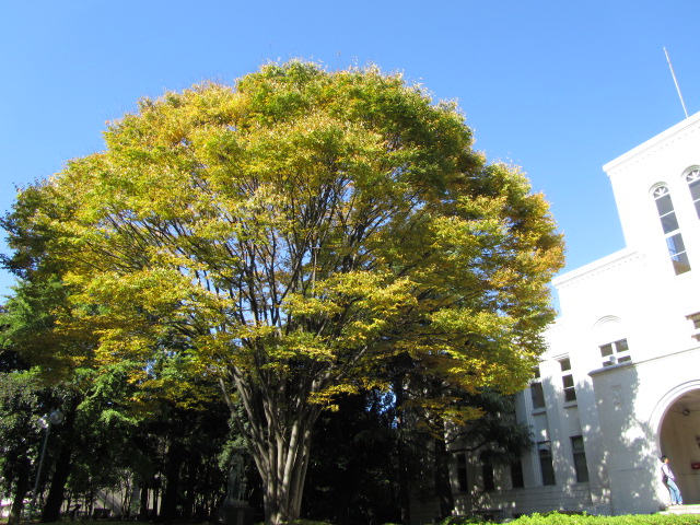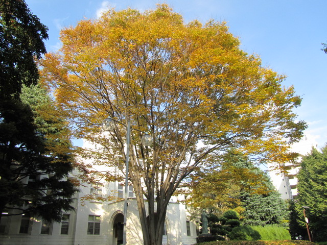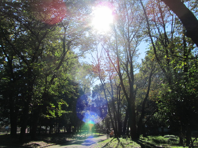 紅葉し始めた桜の上にふんわりと注いでいました。