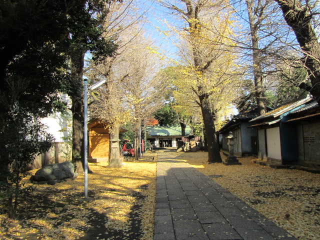 境内の銀杏は葉をほとんど落とし、